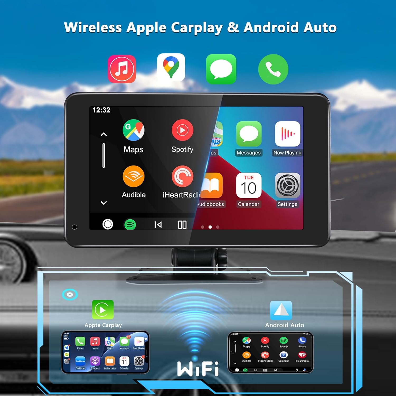 Compatibile con Apple CarPlay e Android Auto per guida smart e senza cavi.