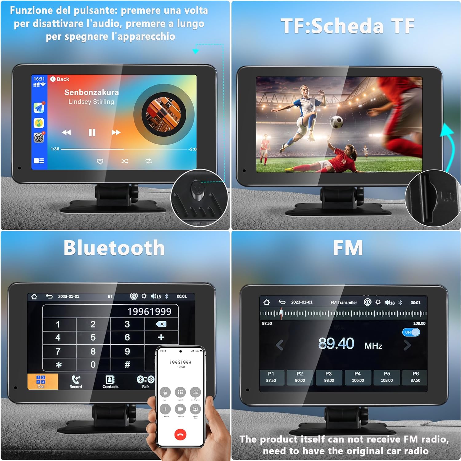 - Funzioni Smart: Navigazione GPS aggiornata con Google Maps, Waze e Apple Maps per viaggi senza stress.