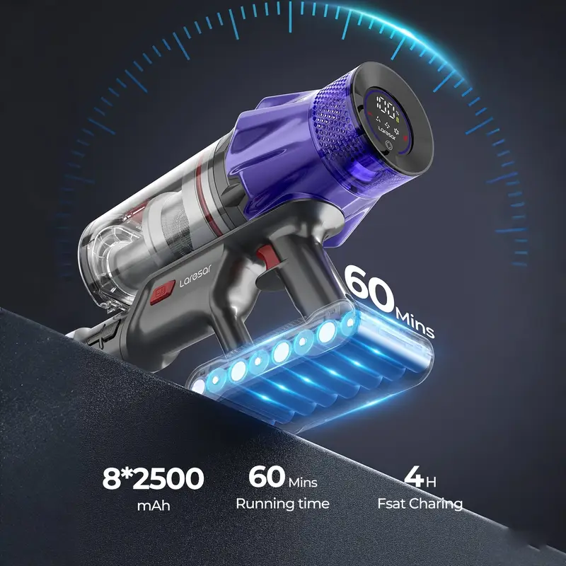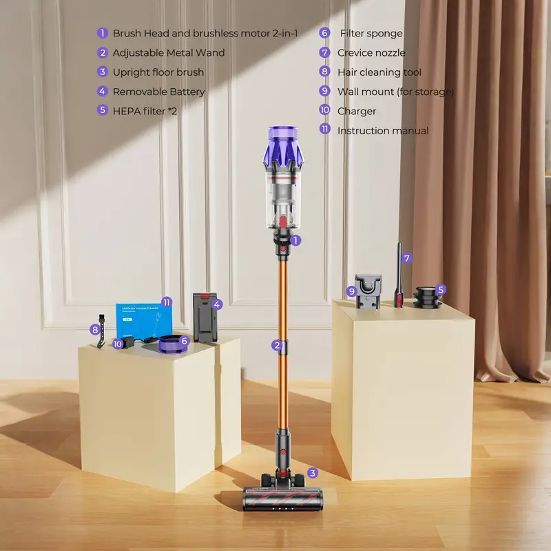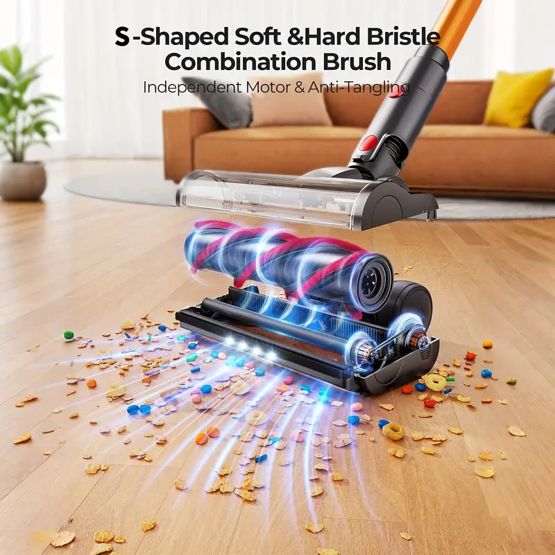 Aspirator wireless puternic cu motor de 120 W și baterie litiu de 2500 mAh pentru o curățenie rapidă și versatilă.