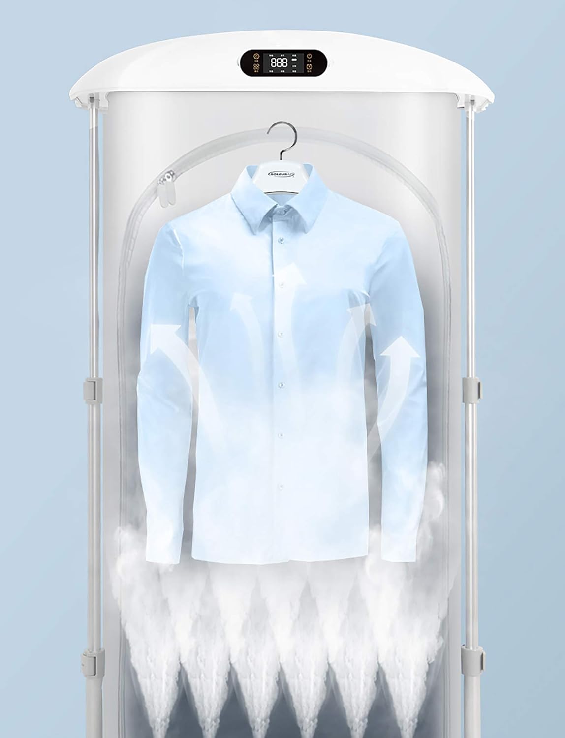 Echipat cu un sistem de sterilizare cu raze UV, acest dispozitiv asigură o igienă profundă eliminând până la 99,9% din bacterii și germeni. Ideal pentru cei care doresc haine nu doar uscate și fără cute, ci și perfect curate și sigure. Tehnologia UV oferă o protecție avansată, perfectă pentru medii casnice sau profesionale.