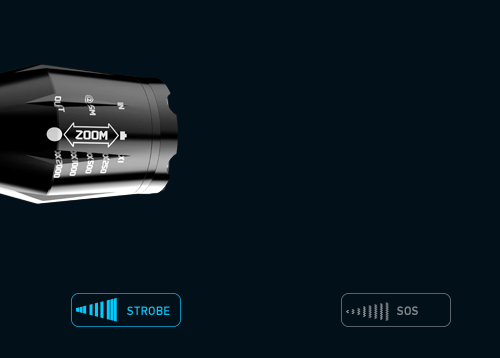 El modo “Estroboscópico” deslumbra a los malhechores. El modo “SOS” emite un haz de luz intermitente visible a kilómetros de distancia