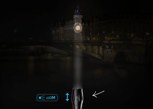 Permite incluso concentrar el haz de luz en un objetivo distante para mejorar la capacidad de iluminación